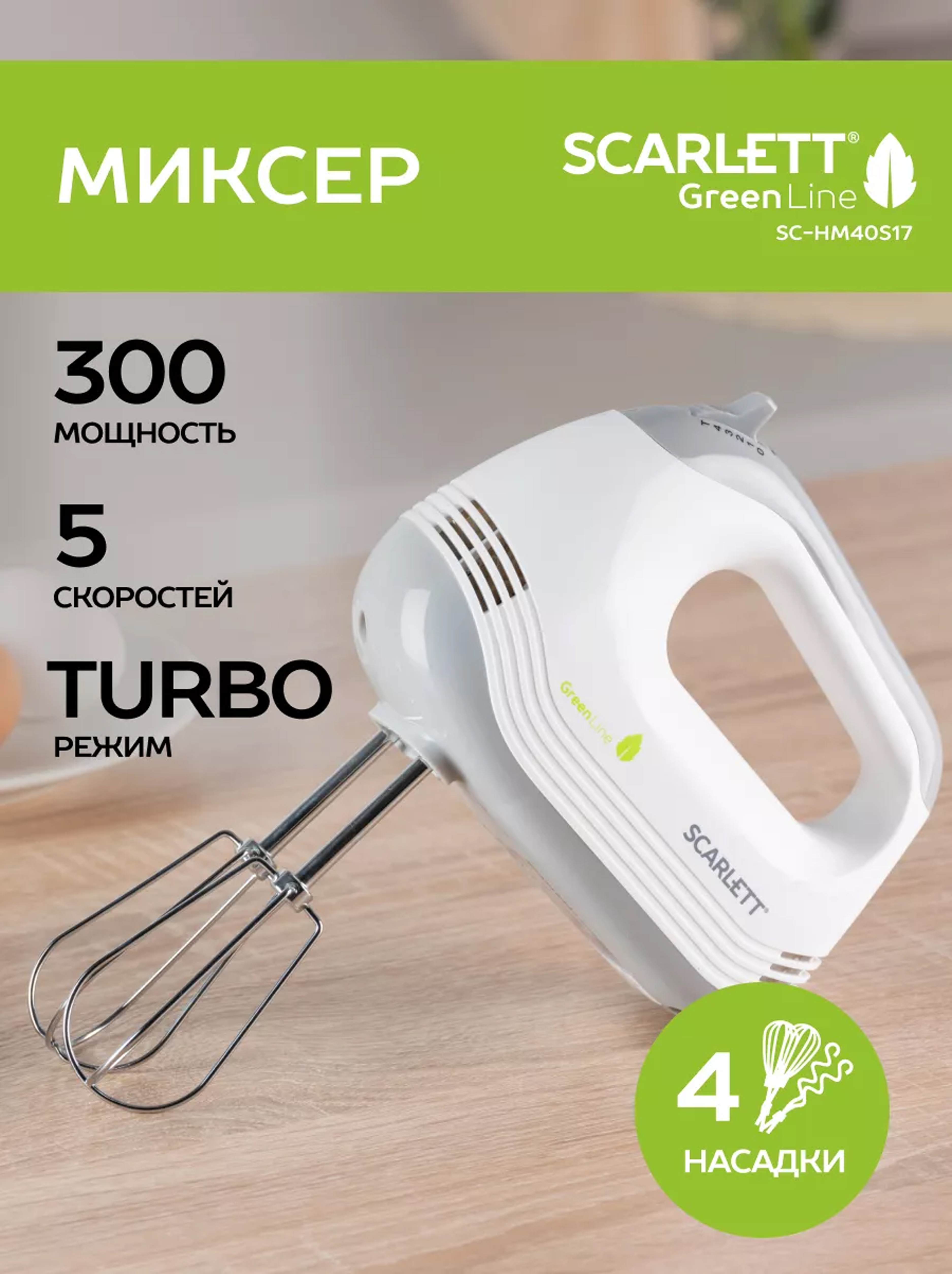 Ручной электрический миксер Scarlett SC-HM40S17 — это надежный и мощный помощник на кухне для любой кондитерской задачи. С максимальной мощностью 300 Вт этот прибор легко справляется с взбиванием белков, кремов и легкого теста, обеспечивая идеальную текстуру и консистенцию ваших блюд.